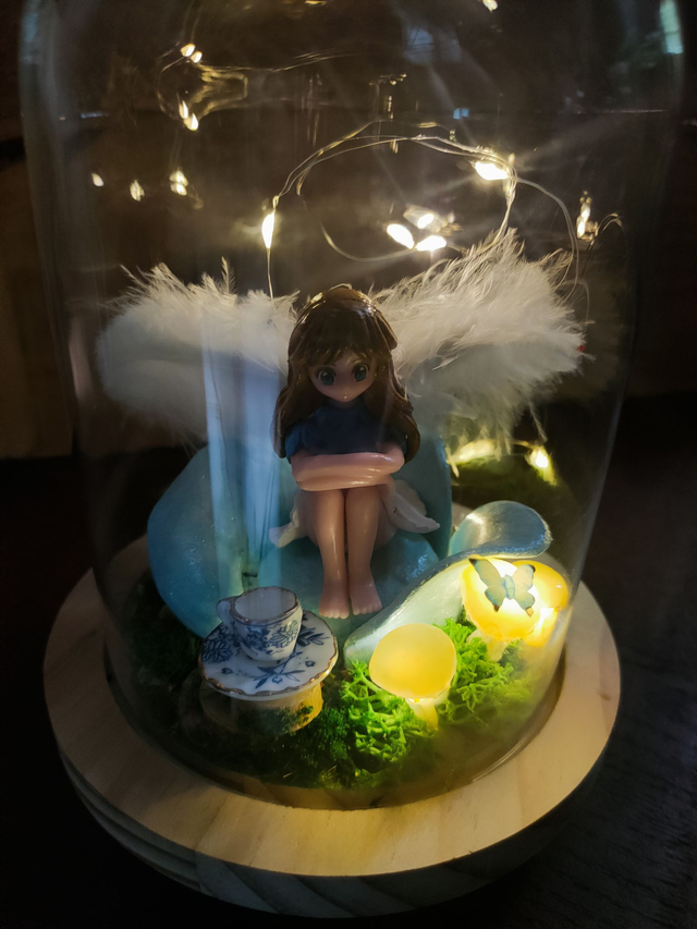 Sous sa cloche de verre, la fée infuse les rêves oubliés.