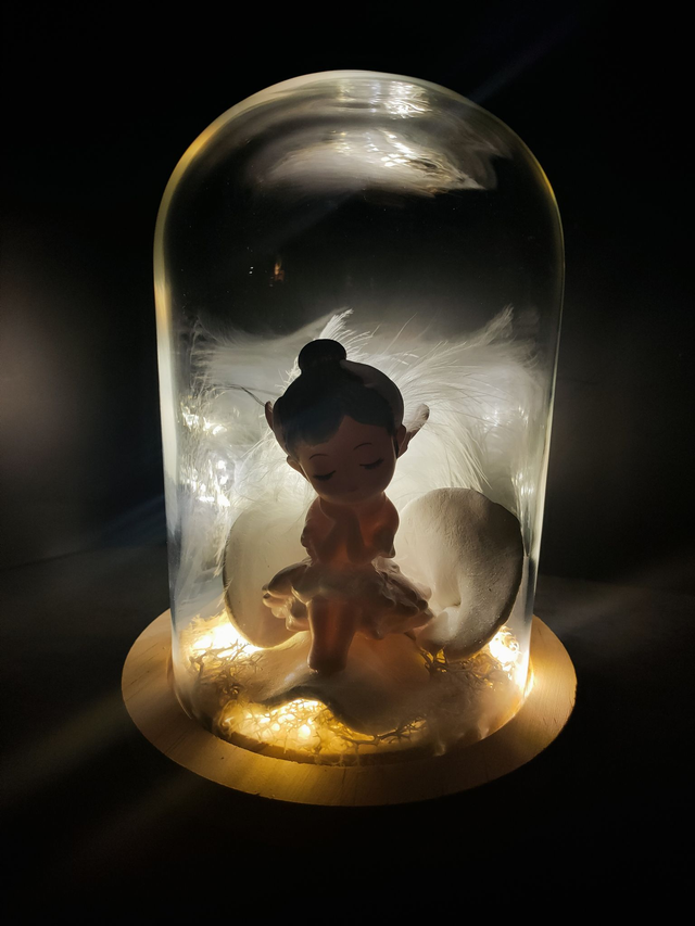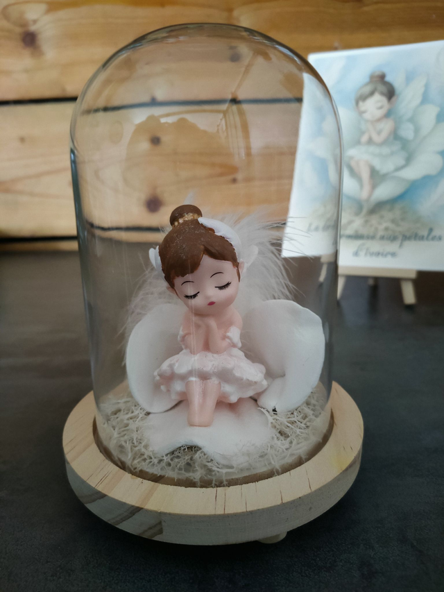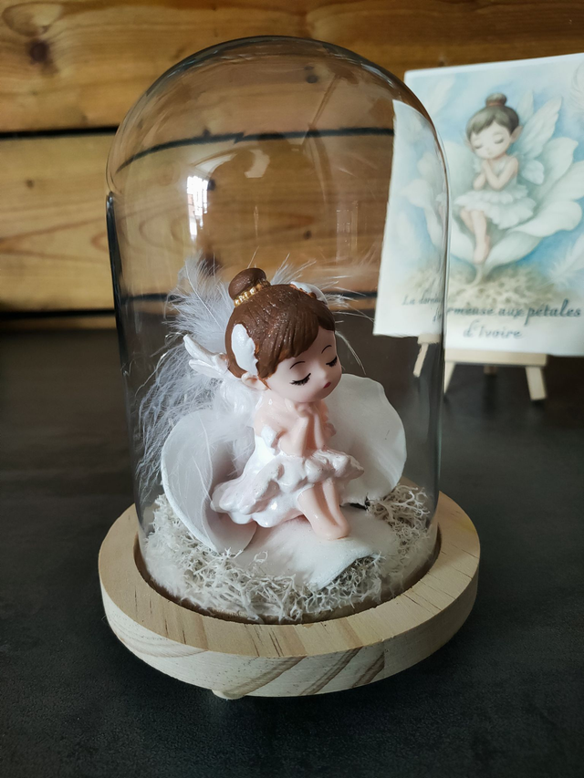 Sous sa cloche de verre, La Dormeuse aux pétales d’Ivoire repose comme au creux d’un nuage.